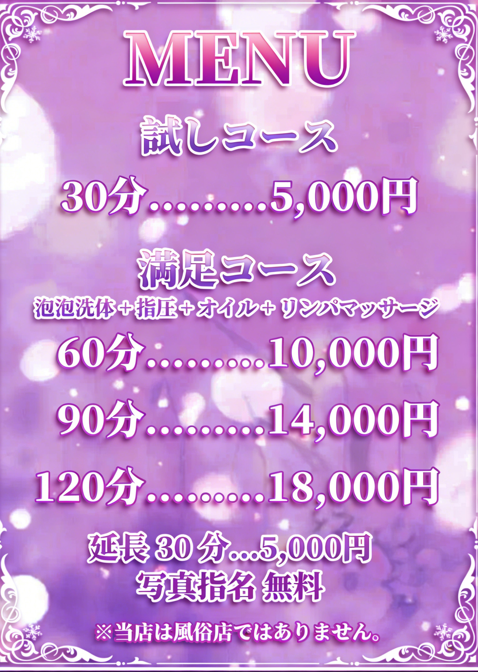 当店のセラピストは容姿が良いだけではなく、技術、マナー、気遣い等、接客面にも妥協をせず、お客様に身も心もゆだねて頂けるような愛されるセラピストとの出会いをお約束致します。どうぞ、ご安心してご利用くださいませ!
